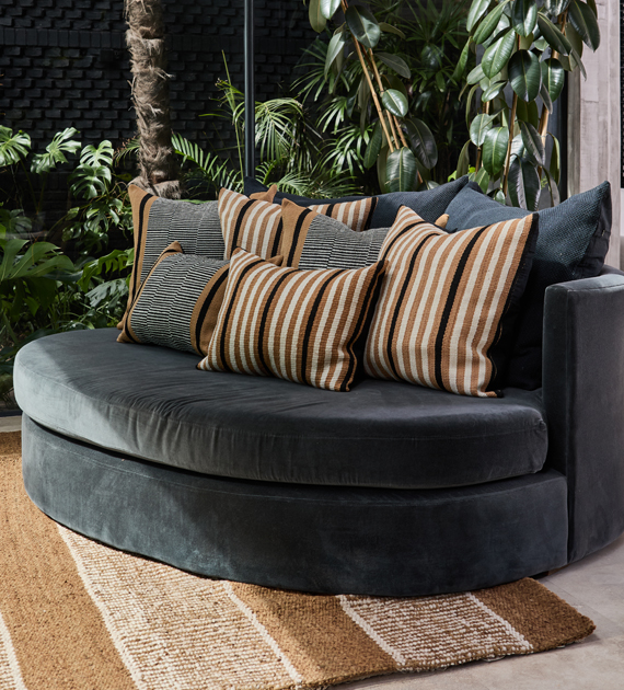 Hornillos cushions are characterized by their delicate striped design, which adds rhythm and visual subtlety without overwhelming the space.
