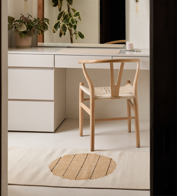 This is a lightweight rug with a thinner profile than the Monte collection, thanks to its weaving technique and the combination of cotton in the warp and wool in the weft. It allows for any type of design—plain, geometric or organic—and can be woven in more than 80 shades, from soft earthy tones to vibrant colors.
