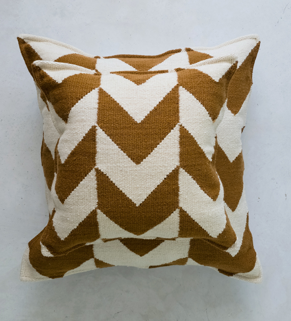Los almohadones de la colección Valle están tejidos con lana, y se caracterizan por sus diseños de rayas, cruces y motivos geométricos, que aportan carácter y una identidad marcada al ambiente.