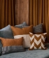 Los almohadones de la colección Valle están tejidos con lana, y se caracterizan por sus diseños de rayas, cruces y motivos geométricos, que aportan carácter y una identidad marcada al ambiente.