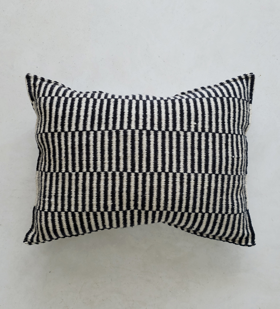 Los almohadones de la colección Valle están tejidos con lana, y se caracterizan por sus diseños de rayas, cruces y motivos geométricos, que aportan carácter y una identidad marcada al ambiente.
