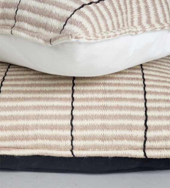 Los almohadones de la colección Valle están tejidos con lana, y se caracterizan por sus diseños de rayas, cruces y motivos geométricos, que aportan carácter y una identidad marcada al ambiente.
