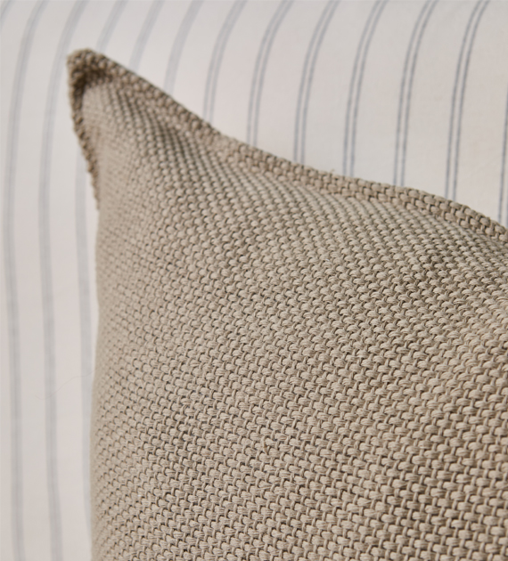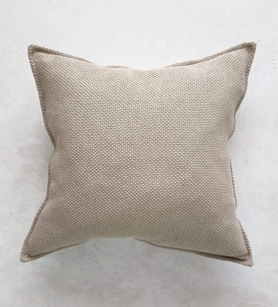 Almohadón cuadrado tejido en telar de peine con algodón puro. Las pequeñas pestañas en el frente aportan textura y relieve, sumando interés visual sin perder neutralidad. Una pieza equilibrada que transmite frescura y armonía.