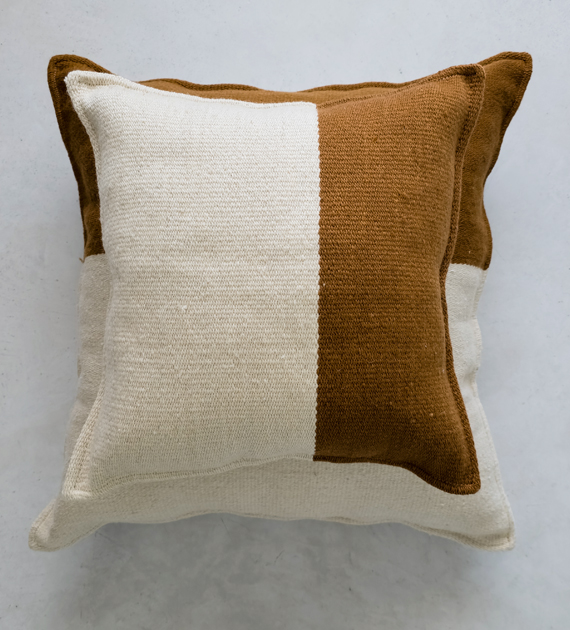 Los almohadones de la colección Valle están tejidos con lana, y se caracterizan por sus diseños de rayas, cruces y motivos geométricos, que aportan carácter y una identidad marcada al ambiente.
