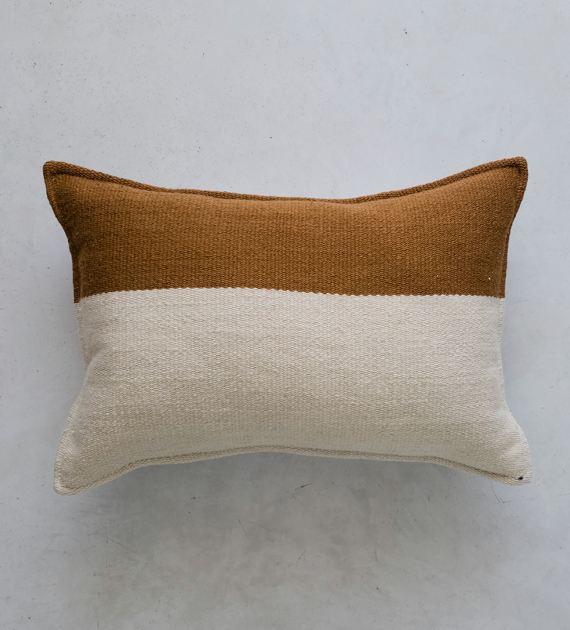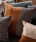 Los almohadones de la colección Valle están tejidos con lana, y se caracterizan por sus diseños de rayas, cruces y motivos geométricos, que aportan carácter y una identidad marcada al ambiente.