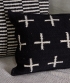 Los almohadones de la colección Valle están tejidos con lana, y se caracterizan por sus diseños de rayas, cruces y motivos geométricos, que aportan carácter y una identidad marcada al ambiente.