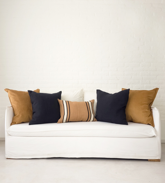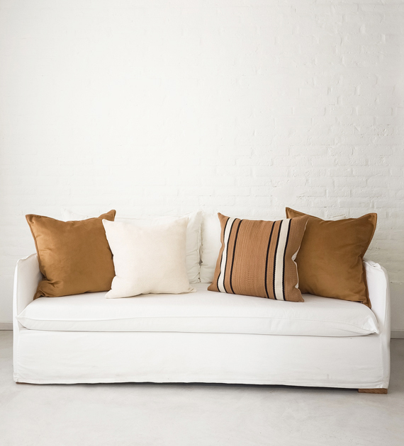 Confeccionados en pana por ambos lados, pueden usarse de cualquiera de sus caras, permitiendo rotación y mayor durabilidad. Poseen solapas y cierre oculto en la parte inferior, logrando una terminación prolija y estética sin interferir en la visual del frente.
