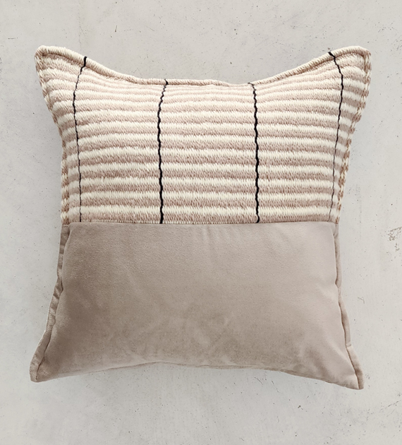 Almohadón cuadrado tejido en telar con lana pura de oveja y pana. Dorso de pana.