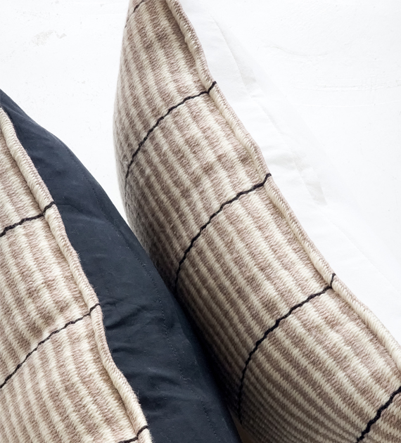 Almohadón cuadrado tejido en telar con lana pura de oveja. Dorso de tela de algodón offwhite.